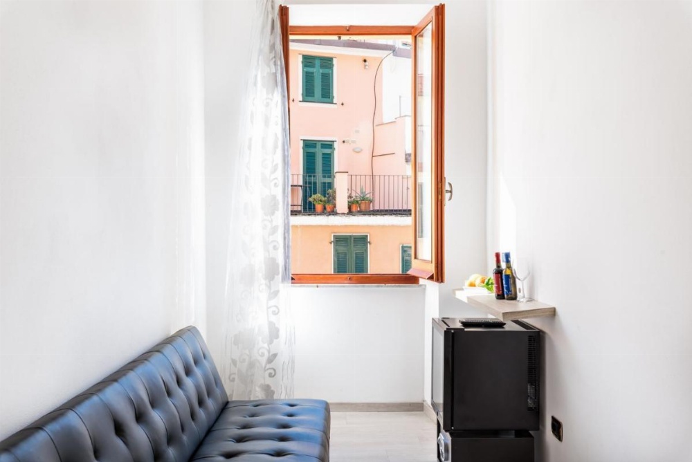 This double room has a tile/marble floor, sofa and electric kettle.